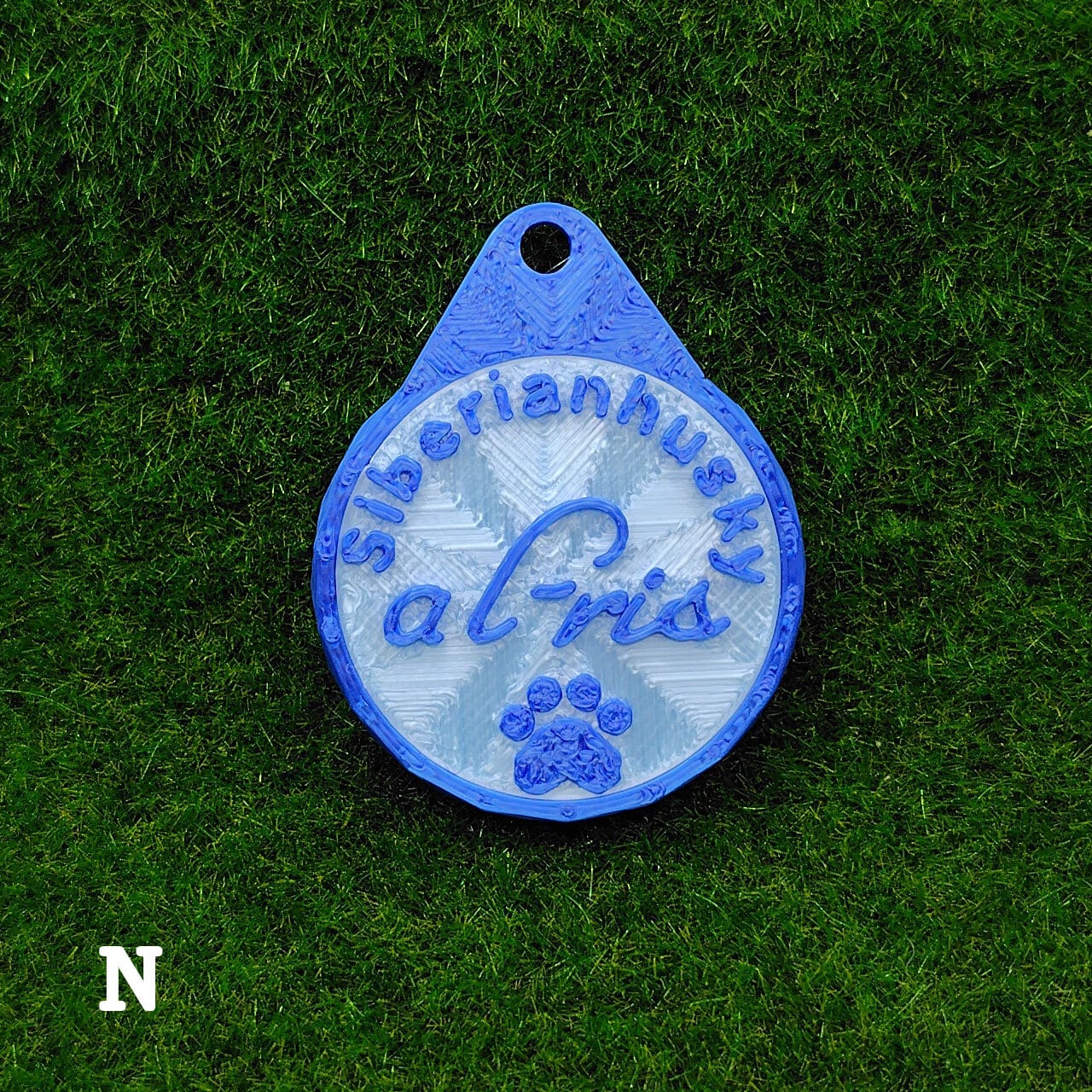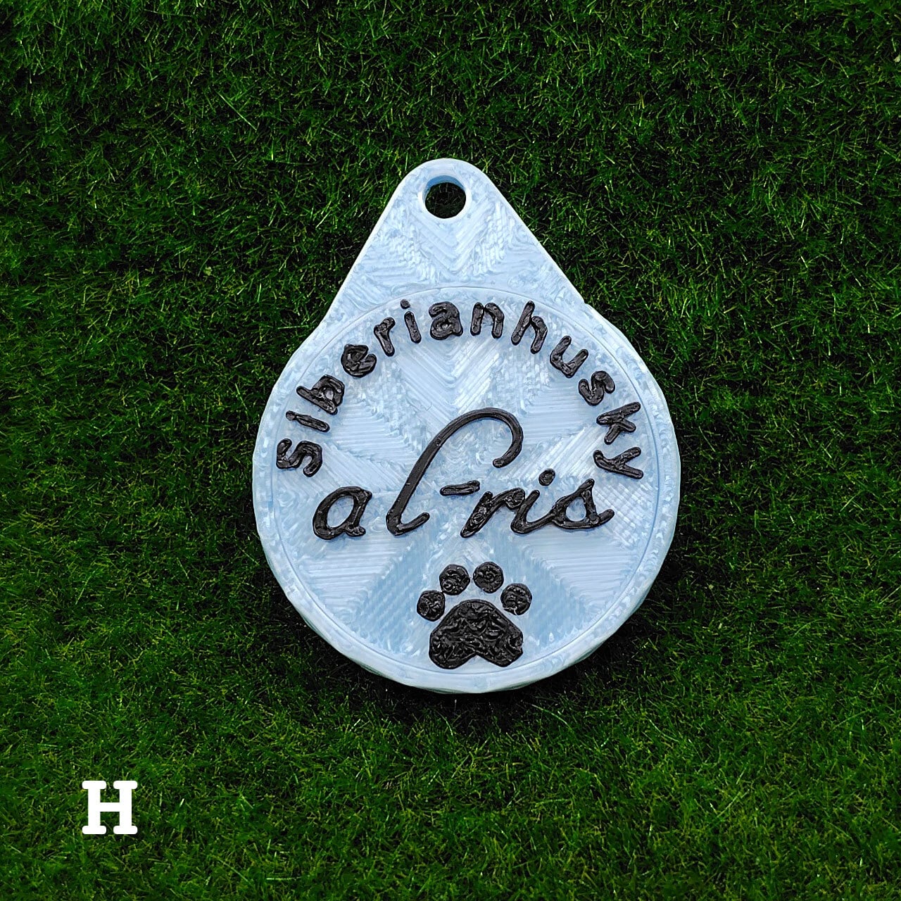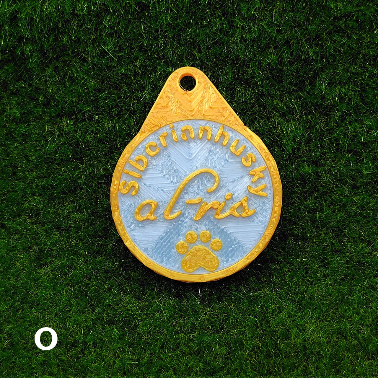 表面に犬種・おなまえ・足跡マーク、裏面にオーナー名・連絡先などが入ります。