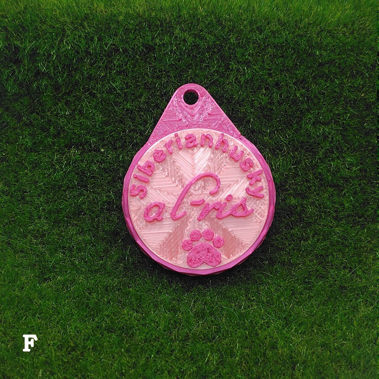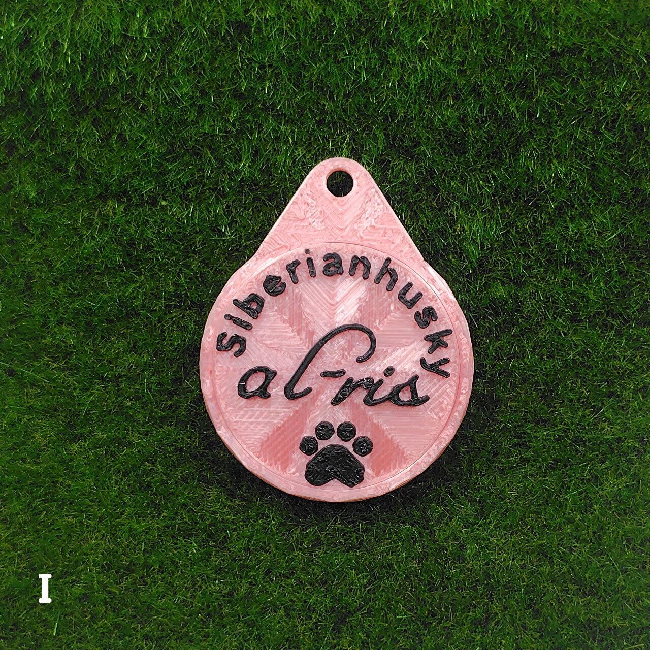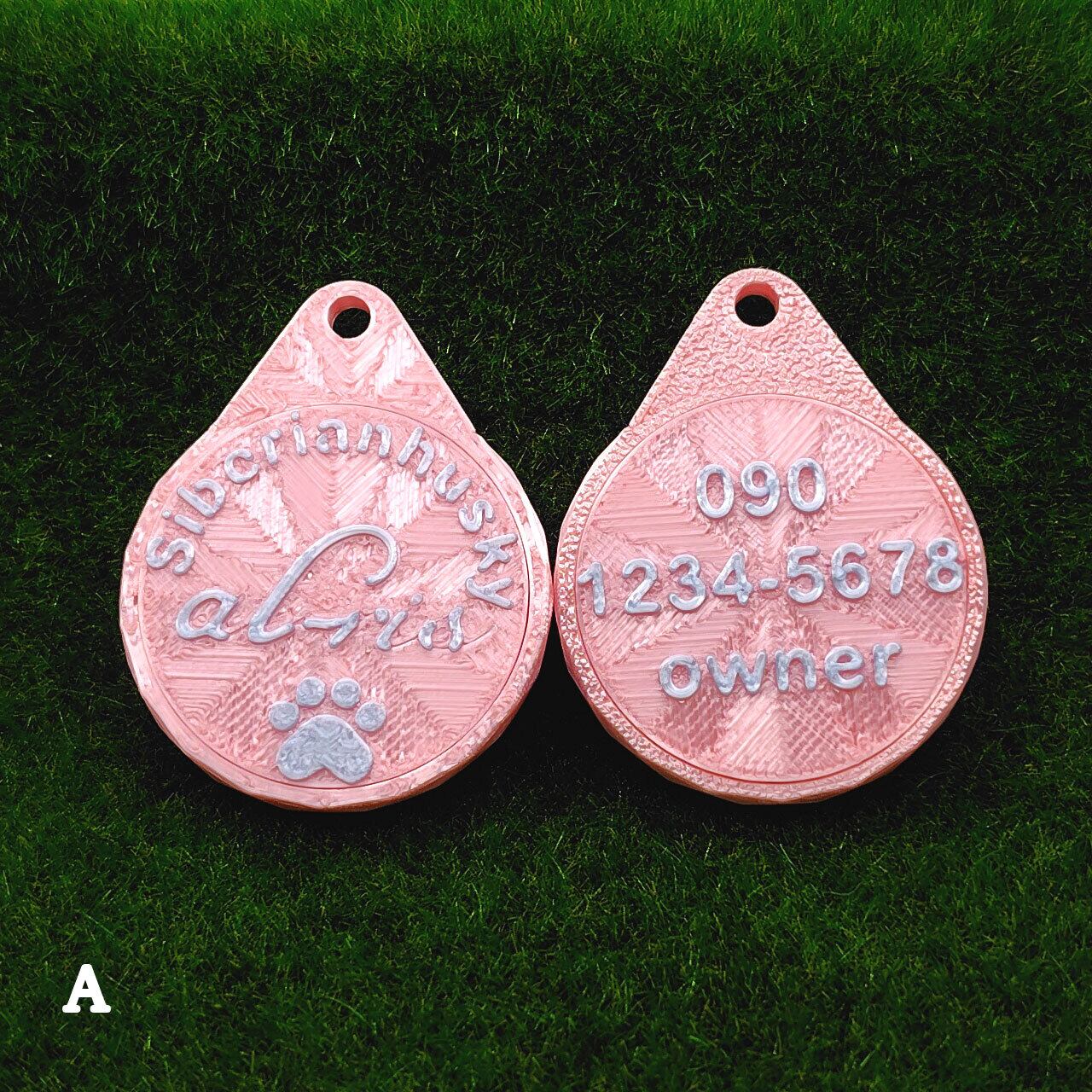 表面に犬種・おなまえ・足跡マーク、裏面にオーナー名・連絡先などが入ります。