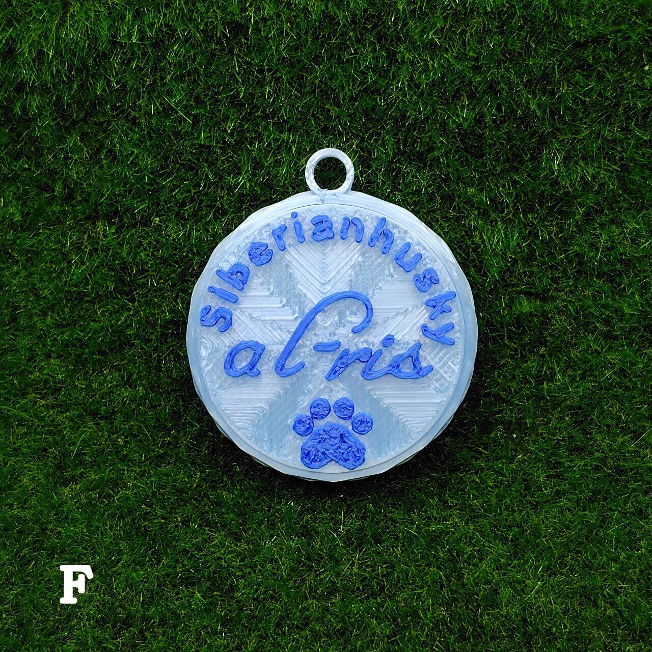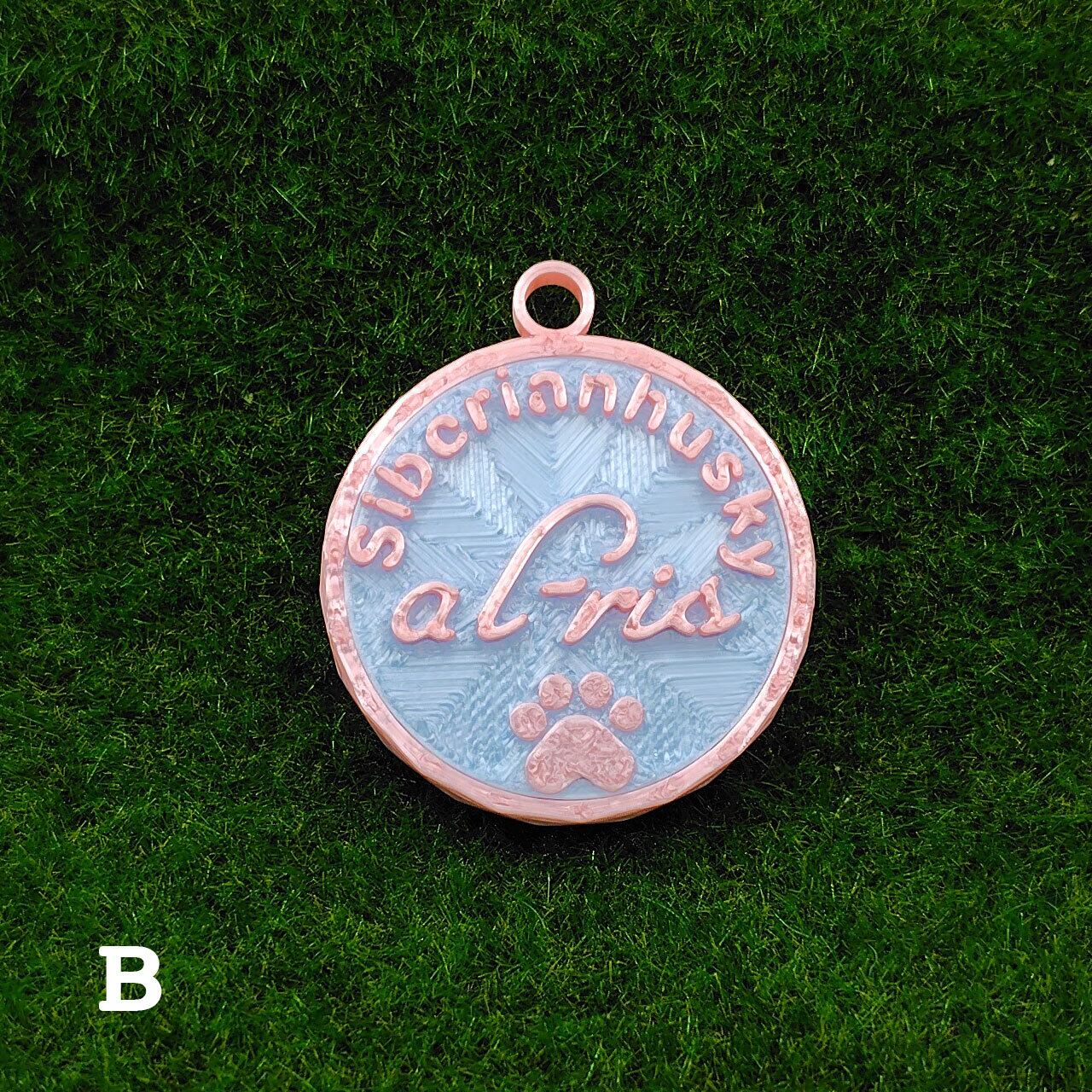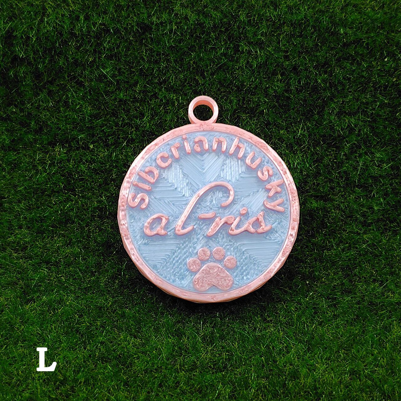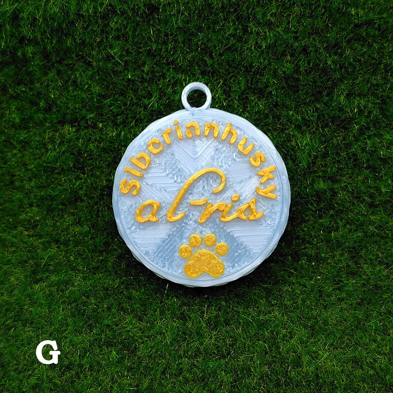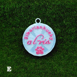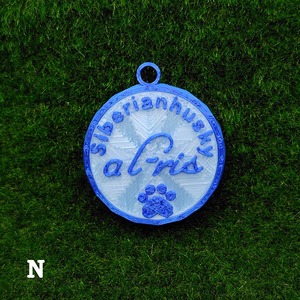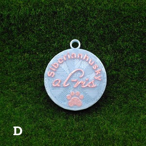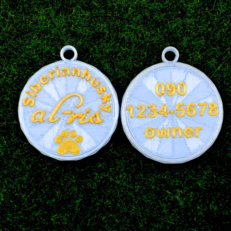 表面に犬種・おなまえ・足跡マーク、裏面にオーナー名・連絡先などが入ります。