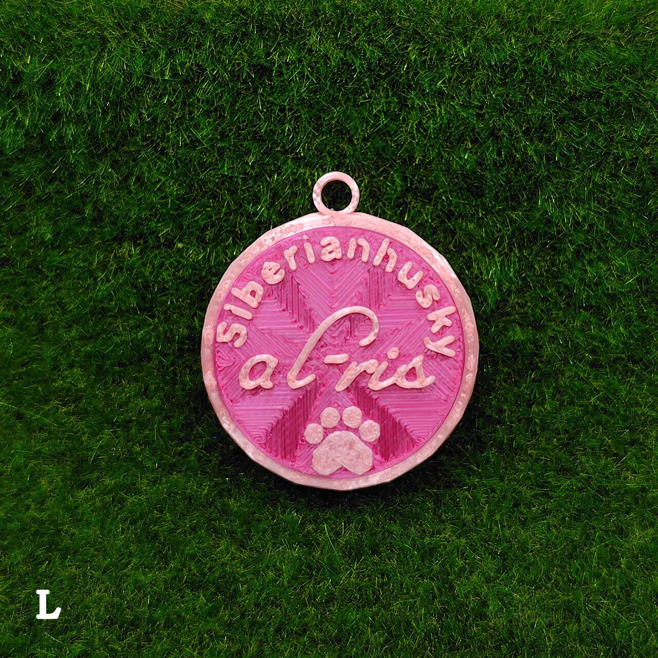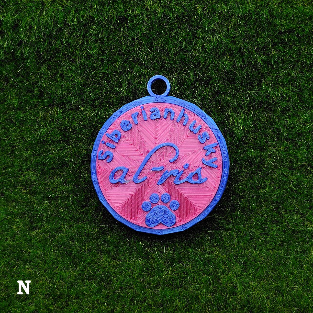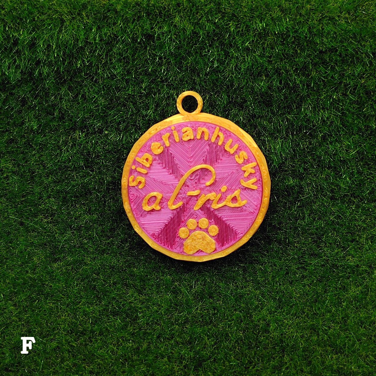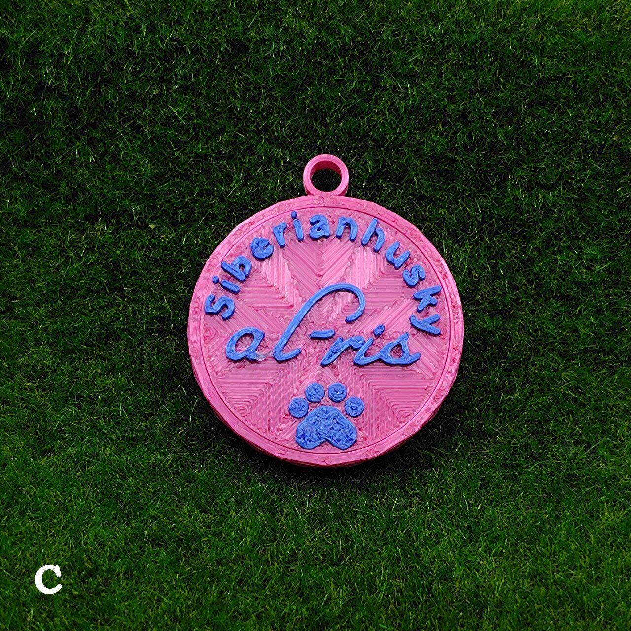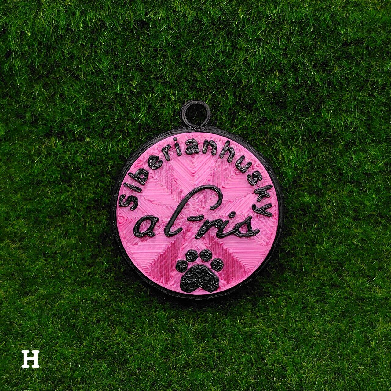 表面に犬種・おなまえ・足跡マーク、裏面にオーナー名・連絡先などが入ります。