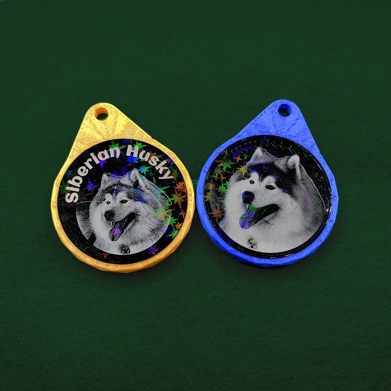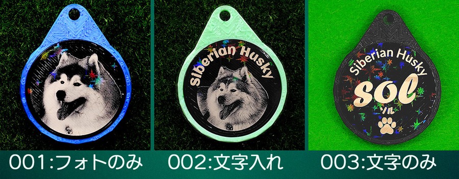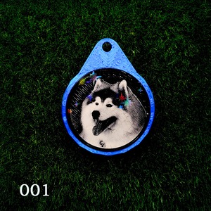 レーザー彫刻で製作したチャームです。ウチの子画像をお送りください。裏面にはお名前やメッセージをお入れできますので、迷子札としての活用も可能です。また、枠のカラーは8色からお選びいただけますので、個々のスタイルに合わせたカスタマイズが楽しめます。